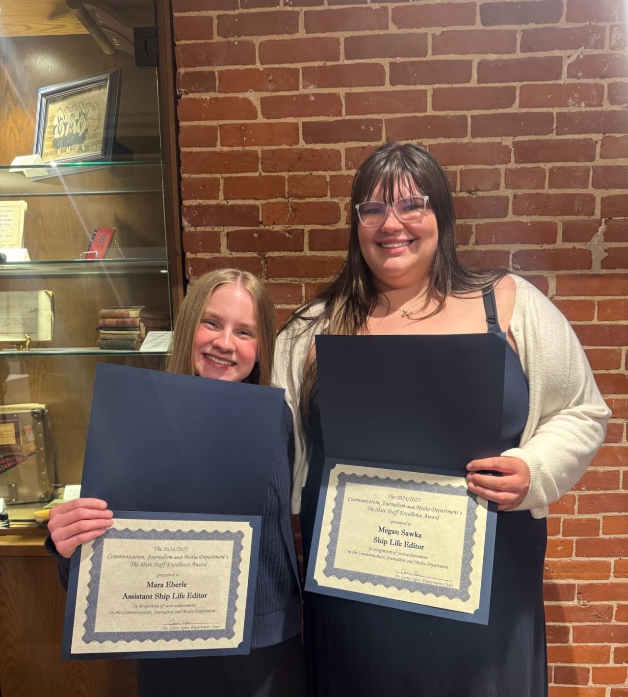 At the spring 2025 communication, journalism and media department awards night, I was awarded the Slate Staff Excellence Award for my role as Ship Life Editor.